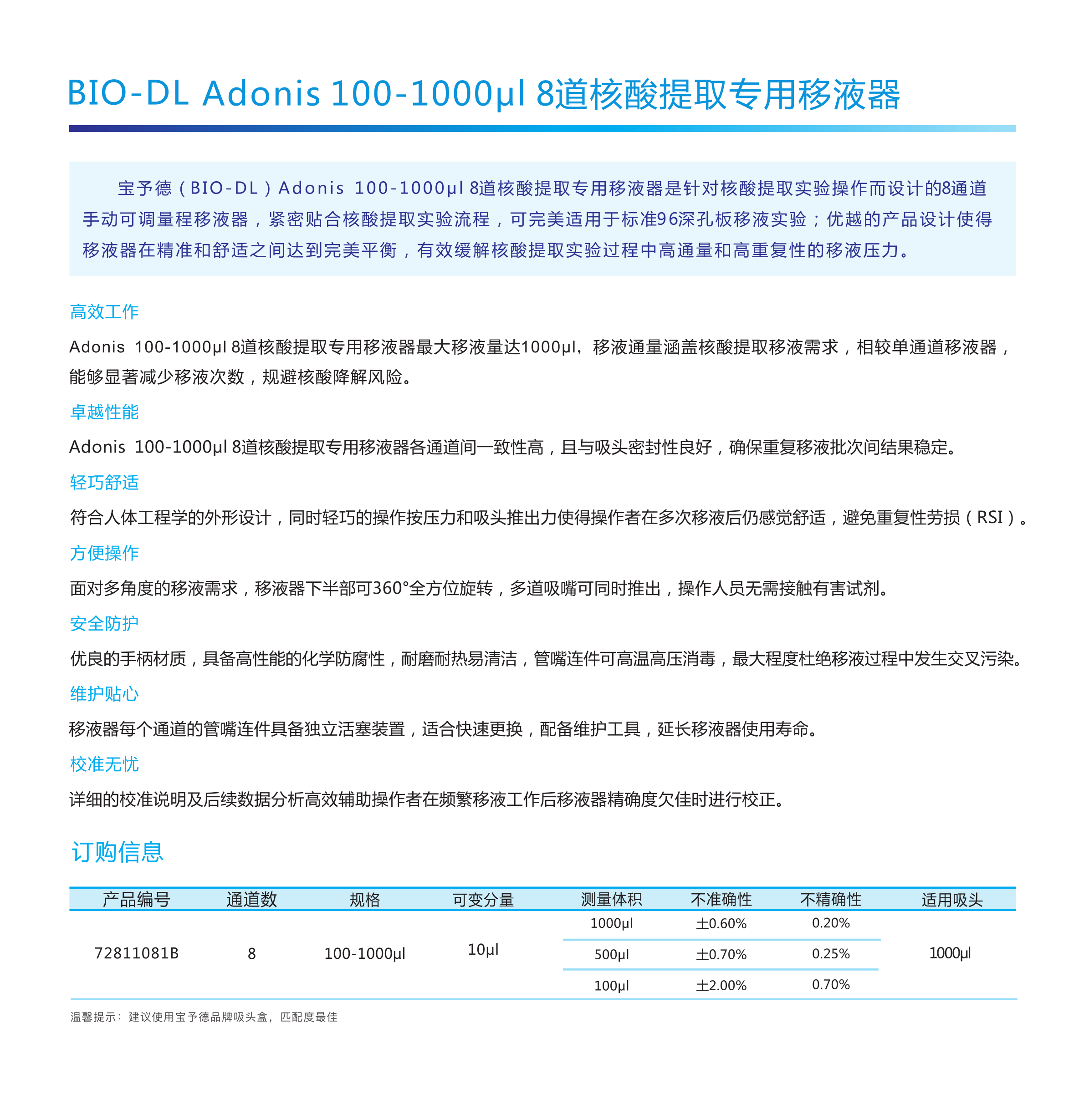 Adnios 100-1000μl 8道核酸提取专用移液器