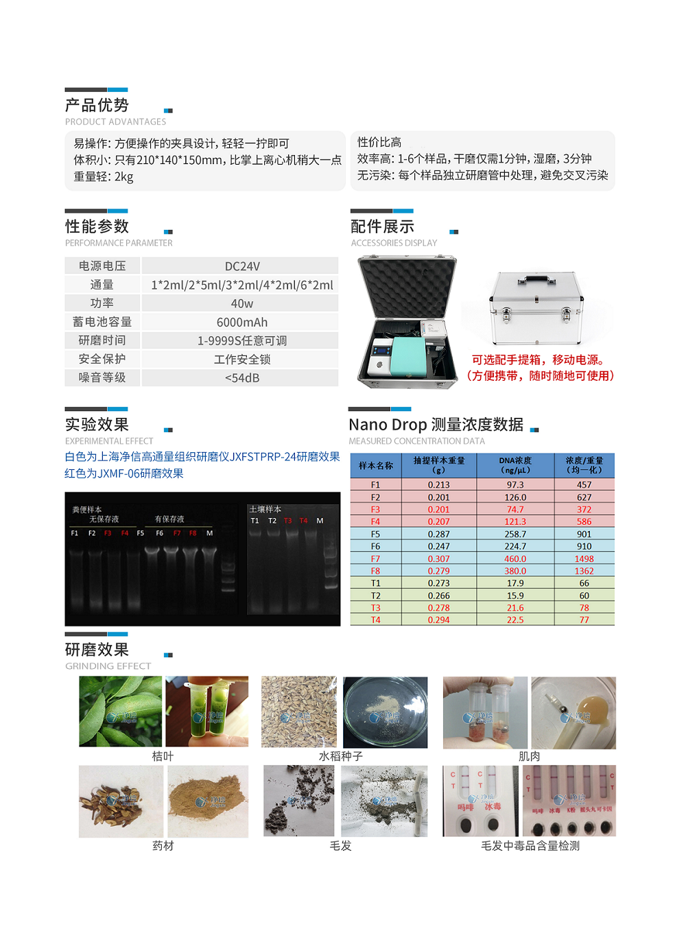 应用领域:适用于毛发、痰液、植物、食品、微生物等各种组织研磨。